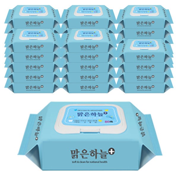 맑은하늘플러스물티슈 80매X30팩 학교준비물 요양병원 > 생활