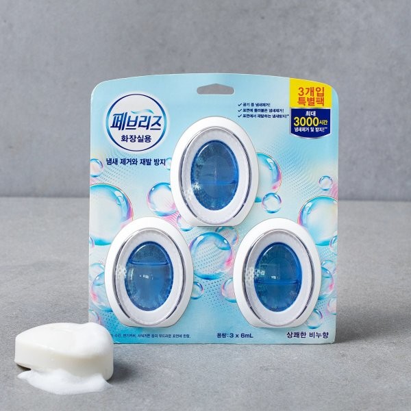 화장실의 냄새를 제거하고 재발 방지를 돕는 페브리즈 화장실용 방향제입니다. 표면에 들러붙은 냄새까지 제거하며, 부담스럽지 않은 상쾌한 비누 향으로 만족스러운 사용감을 선사한답니다.
